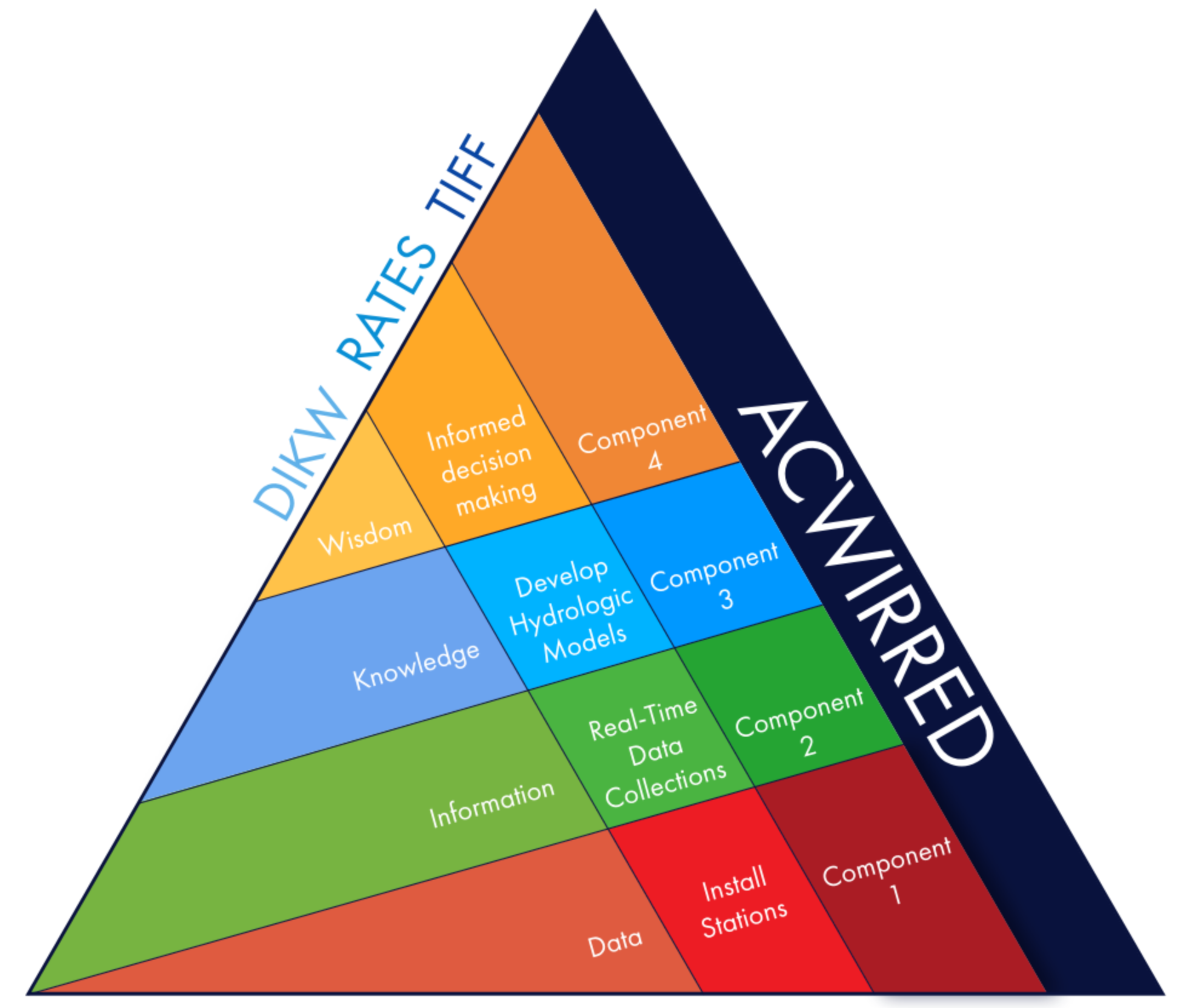 The institute is founded in the informatics principles of Data>Information>Knowledge>Wisdom, defined in this context and aligned with the TIFF components as follows: